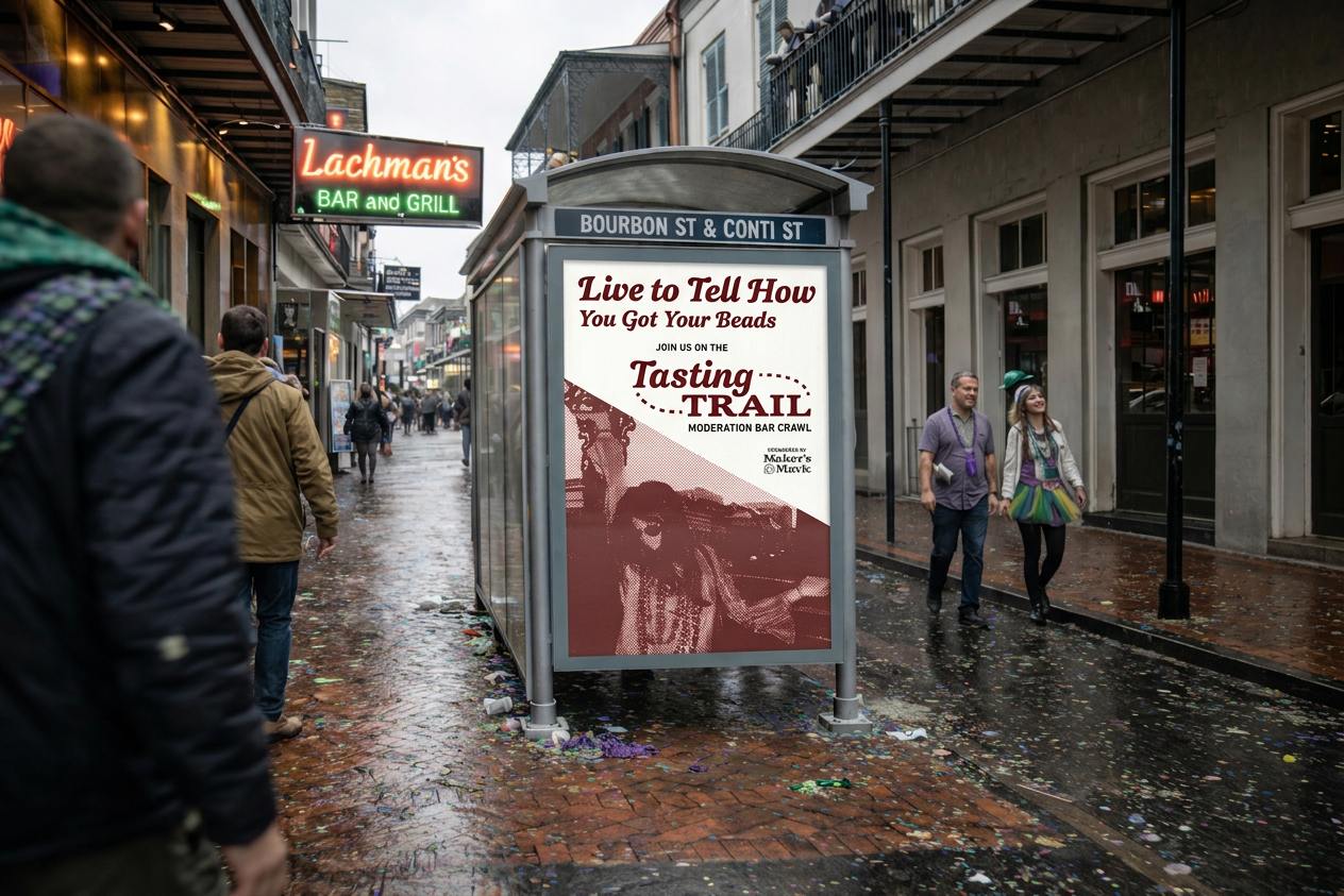 We promoted the Tasting Trail through OOH, with designs centered around social holidays in the hotbed of their popularity, i.e. Mardi Gras in New Orleans, NYE in NYC, St. Patricks Day in Chicago, etc.